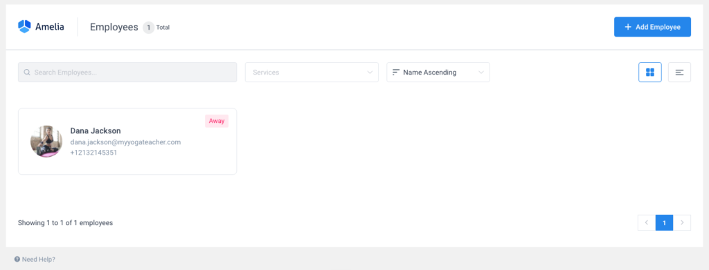 After verifying that Amelia has been installed and activated, the first thing to do is to create an Employee.