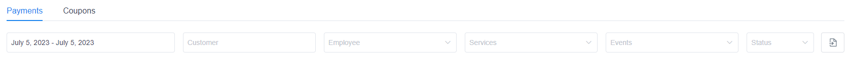 The Finances page shows you two different tabs when the “Coupons” option is enabled in the “Payments Settings”. “Payments” is the default tab.